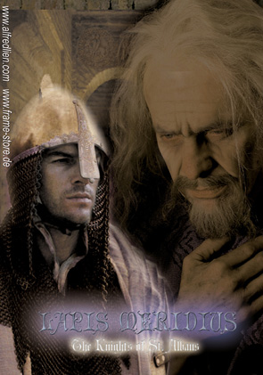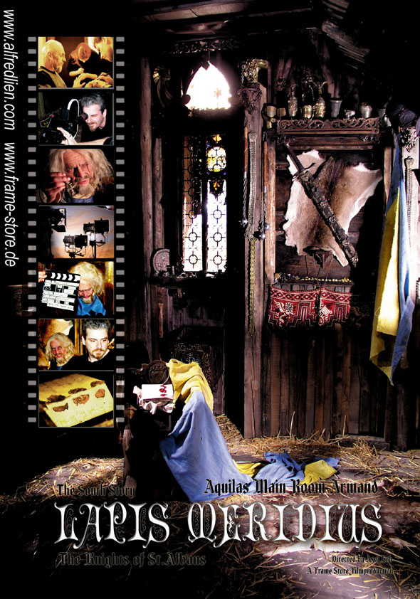 Axel Loh's epic film is being made at Frame Store's studio near Frankfurt and on location in Germany and Spain. The Frame Store artwork (right) shows the make-up sequence and the set for my part as Armand de Lion. Working in the studio, with Axel (below, right) as Director, was my first experience of playing a human, speaking role.